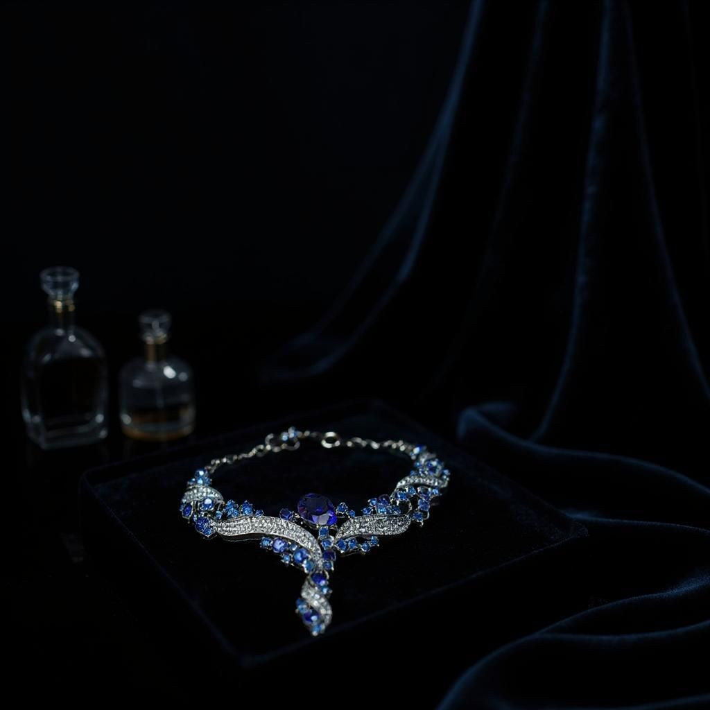 ​Stunning Blue Crystals: The set is beautifully adorned with a combination of deep sapphire-blue and lighter aquamarine-blue crystals, creating a captivating and luxurious gradient effect.