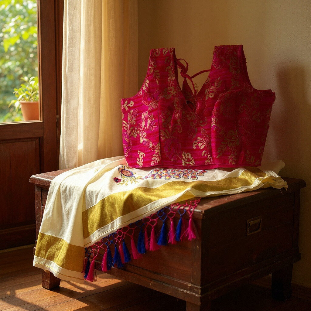 - Saree Fabric: High-quality traditional Kerala Kasavu.