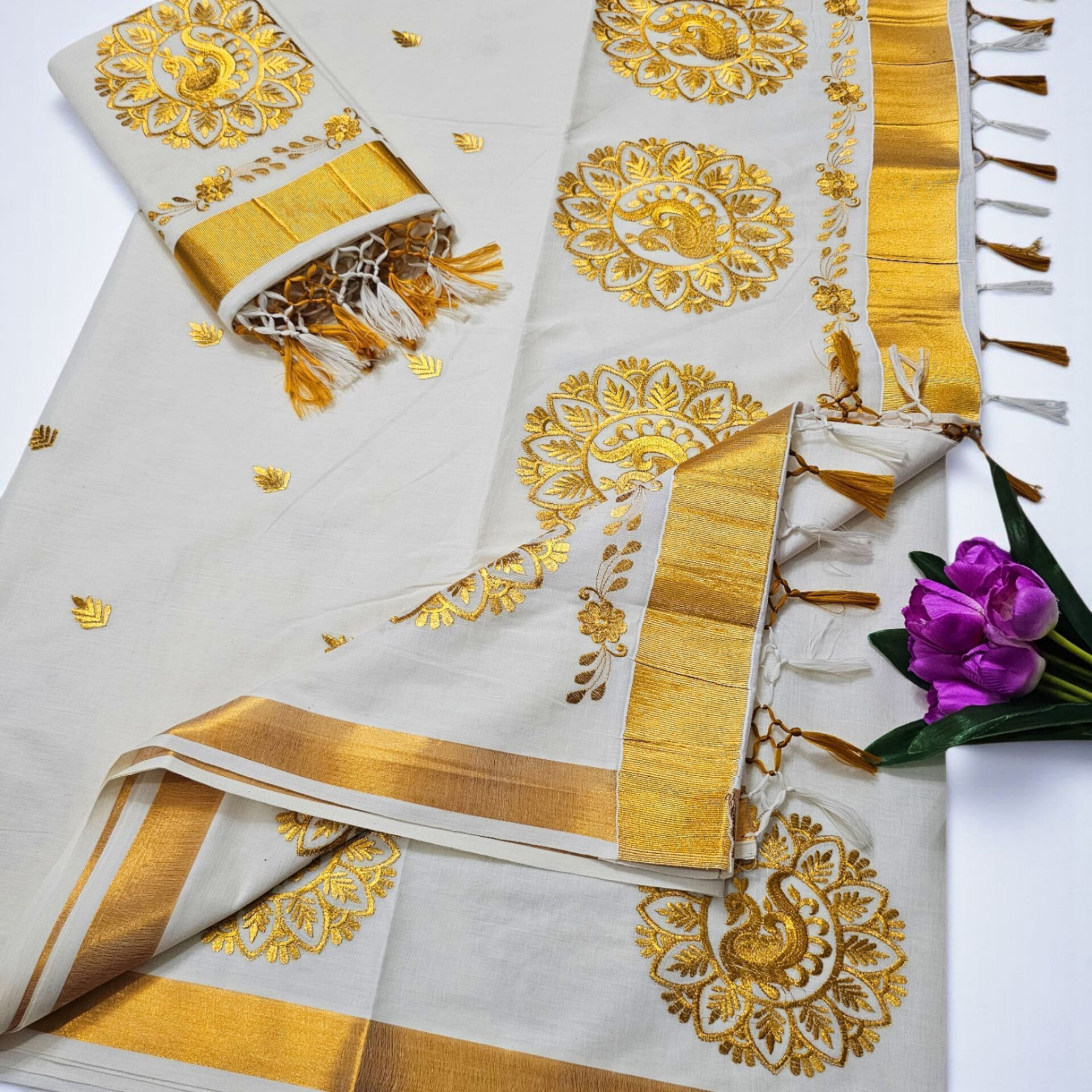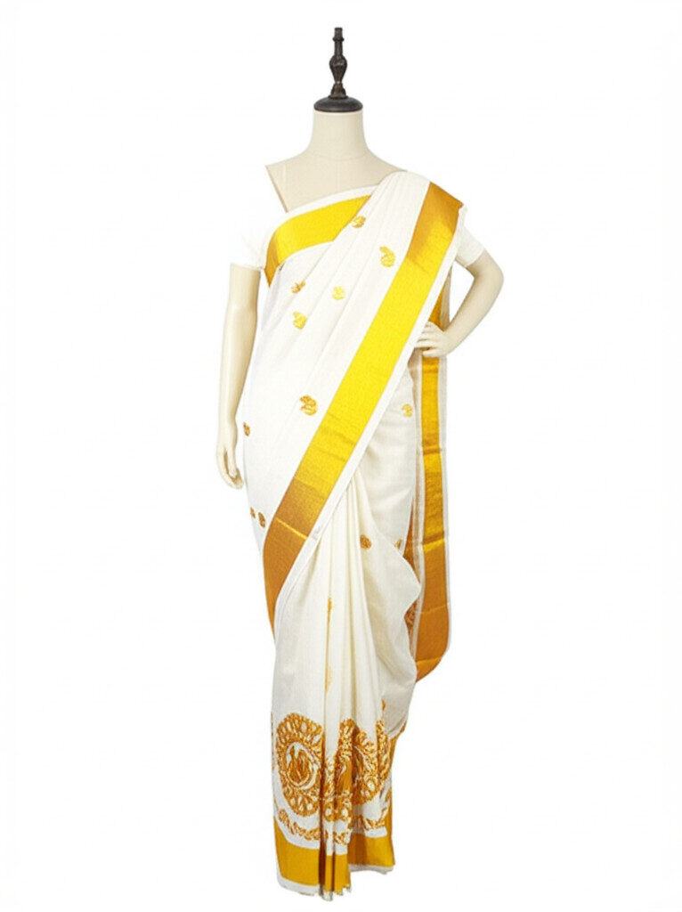 ​Adorn yourself in this classic Onam saree and radiate elegance and festive cheer.